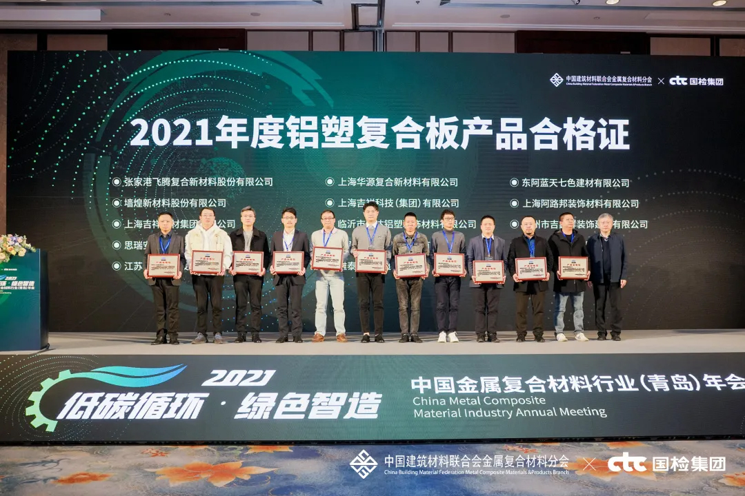 會上,對2021年度行業(yè)優(yōu)秀的產(chǎn)品與企業(yè)進(jìn)行了表彰頒獎——雅泰 YARET 牌鋁塑復(fù)合板,于2018年至2021年期間經(jīng)中國建材檢驗認(rèn)證集團(tuán)股份有限公司抽樣全項檢測,產(chǎn)品質(zhì)量符合中華人民共和國國家標(biāo)準(zhǔn)(GB/T 17748-2016),榮獲2021年度CTC認(rèn)證產(chǎn)品合格證。