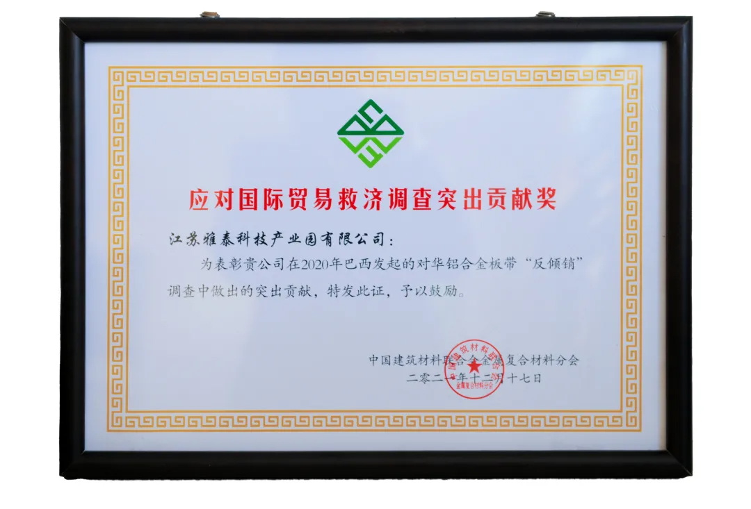 2021年,受各種不可抗力因素影響,國際市場貿(mào)易摩擦不斷,雅泰外貿(mào)形勢略為嚴(yán)峻,但雅泰通過強(qiáng)大的國家背書,尋求各方支持幫助、積極應(yīng)對,成功打贏反傾銷一案,大會特別頒發(fā) “應(yīng)對國際貿(mào)易救濟(jì)調(diào)查突出貢獻(xiàn)獎” 。