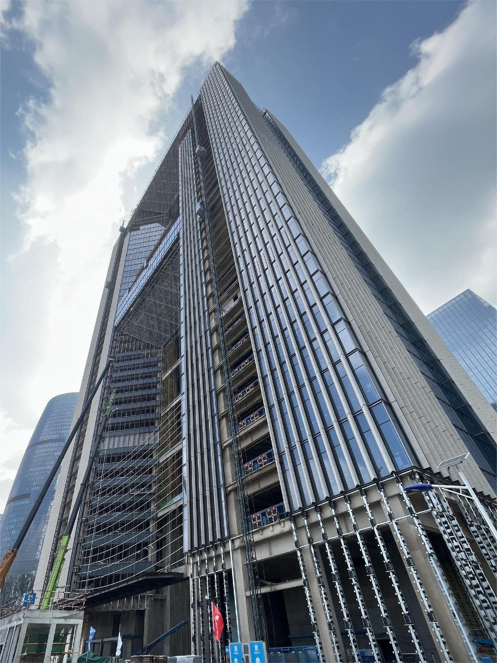 該工程由中國建筑第八工程局有限公司承建,雅泰實(shí)業(yè)集團(tuán)承接外墻裝飾部分材料供材約40000平方米。項(xiàng)目體量大、工期短,目前工程全面進(jìn)入外墻裝飾階段,集團(tuán)全力保障該項(xiàng)目的供材,預(yù)計(jì)10月完成外幕墻全部封閉。封閉后可以完整地看到大廈上部呈現(xiàn)為一個(gè)雄偉的大門,彰顯國家對信息建設(shè)的信心和決心,“信息之門”由此而來。