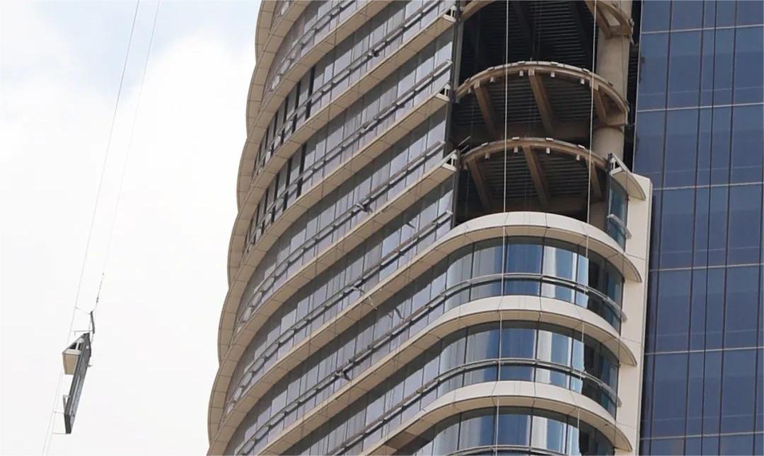 當(dāng)?shù)貧夂蜓谉岣稍铮罡邭鉁乜蛇_(dá)50攝氏度,大樓幕墻需具備很強(qiáng)的防曬作用和耐高溫性能。塔樓呈雙半圓筒狀體外觀構(gòu)造,配以橫向遮陽和雙曲拉鏈梁的裝飾鋁單板,猶如古埃及女神瓦吉特的外衣。這些設(shè)計(jì)元素不僅增強(qiáng)實(shí)用功能,如減少直射日光和控制室內(nèi)溫度,且增加了建筑的視覺吸引力,使其成為一座現(xiàn)代與傳統(tǒng)相結(jié)合的建筑。