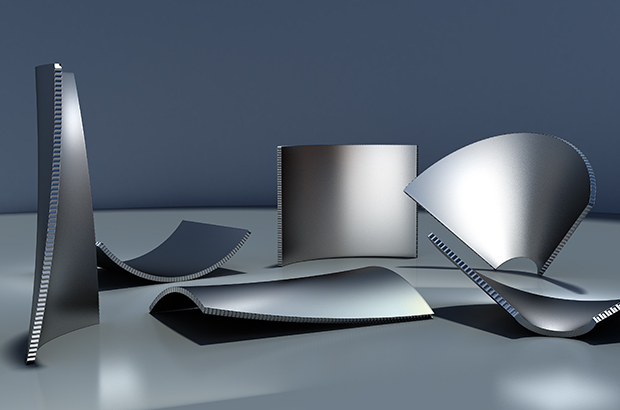 雅泰通過各種技術攻關,解決雙曲鋁蜂窩板雙扭曲問題,形成了一整套的無折痕鋁蜂窩板的加工成型技術,實現(xiàn)雙曲鋁蜂窩板的工業(yè)化生產。