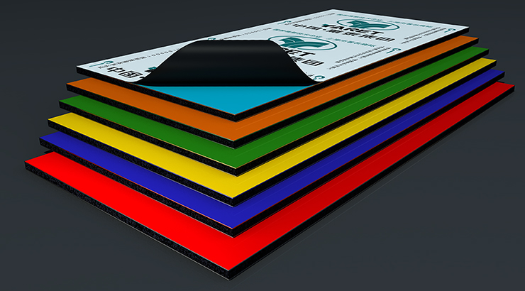 鋁塑板上下層為高強度涂裝鋁箔,中間層為無毒防火高密度聚乙烯( PE )芯板,粘結層為高分子粘結膜。室外用鋁塑板,上層鋁箔涂覆氟碳樹脂涂層;室內(nèi)用鋁塑板,可采用聚酯樹脂涂層和丙烯酸樹脂涂層,亦能滿足其使用要求。